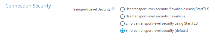 Use transport-level security if available using StartTLS: Try to connect to the server via a Secure Sockets Layer (SSL)/Transport Layer Security (TLS) secured connection and StartTLS. If the server does not support this, the sensor tries to connect without connection security.